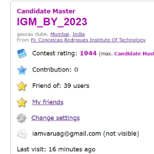 | Rank | Handle | Score | Penalty |
